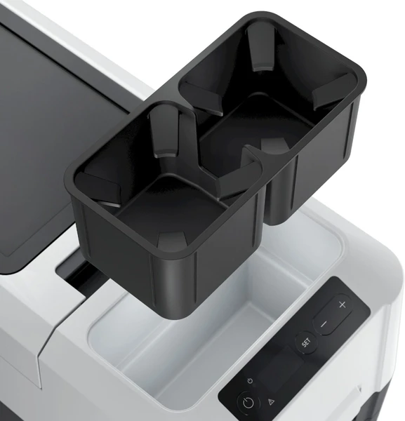 De compressor koelbox heeft aan de voorkant een handige bekerhouder waar je twee bekers of blikjes in kwijt kan. Zo maak je van jouw koelbox ook nog een handige tafel! Gebruik je de bekerhouder niet? Dan haal je hem eruit en heb je ruimte voor bijvoorbeeld je sleutels of kabels. Handig!